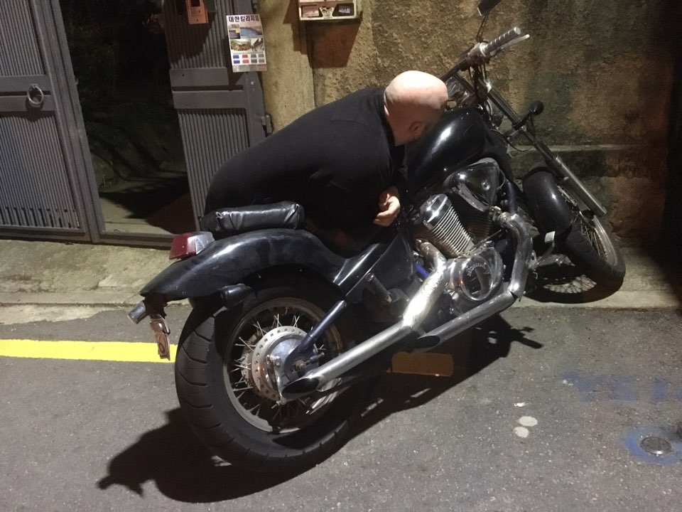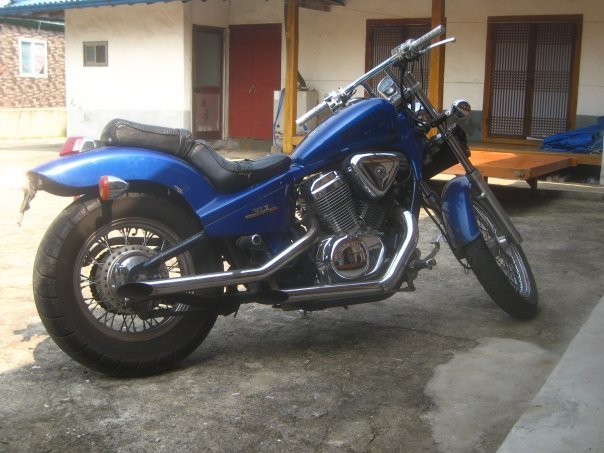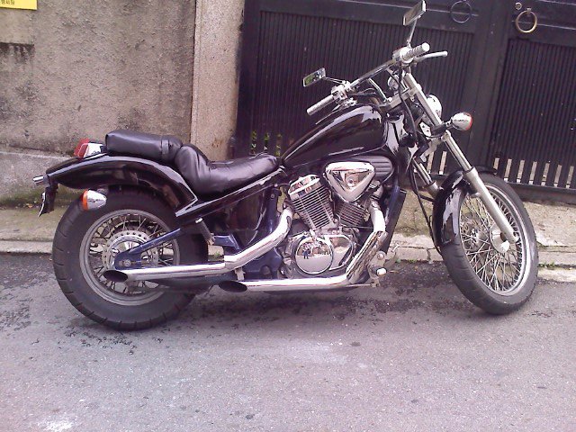This is Juliet. She was a 1996-8ish Honda Steed/Shadow. I loved her. I rebuilt her basically from parts, combining different years/models, and she ran like a top. This piece of shit named Reggie totalled her and never paid a dime to me.